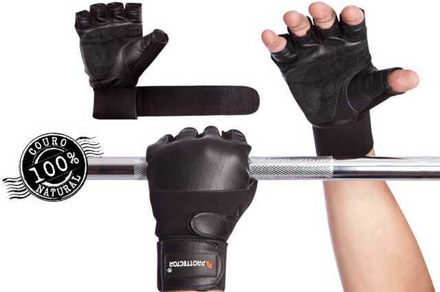 LUVA STRONGER COURO C/MUNHEQ PRETO M PROTTECTOR