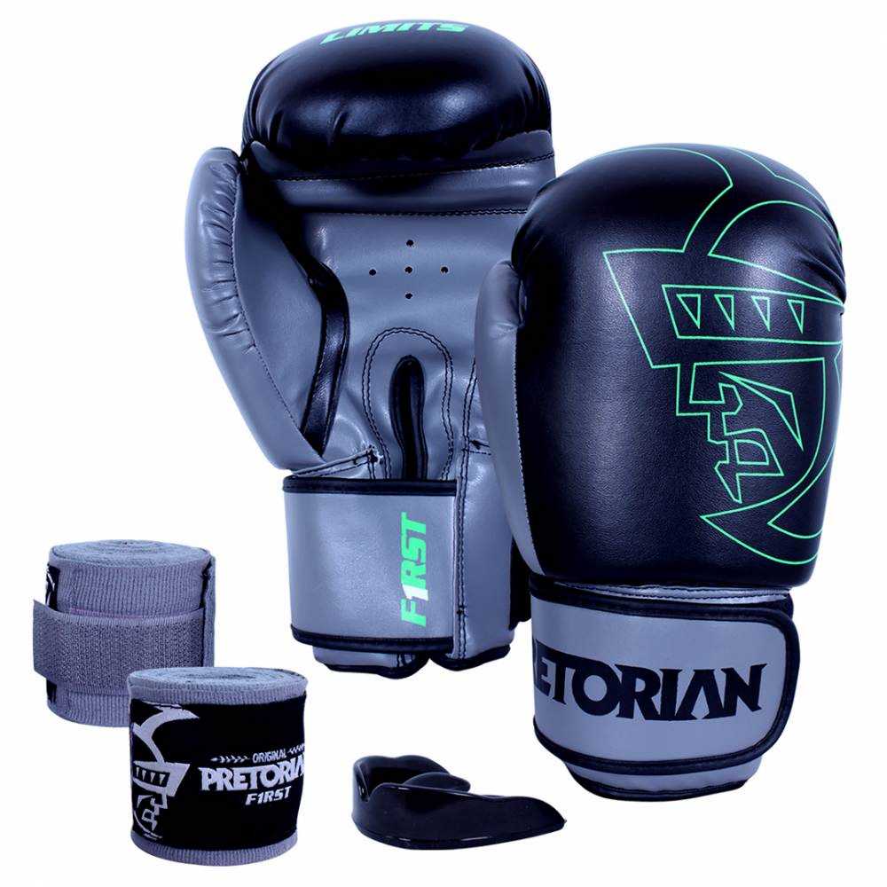 CONJ. BOXE/MUAY THAI PRET. FIRST PRE/CINZA 12OZ