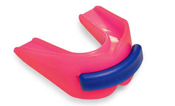 Para proteger os lábios e dentes, o Protetor Bucal Duplo, em cor feminina, é moldável à dentição e conta ainda com canal frontal para desobstrução de ar.
