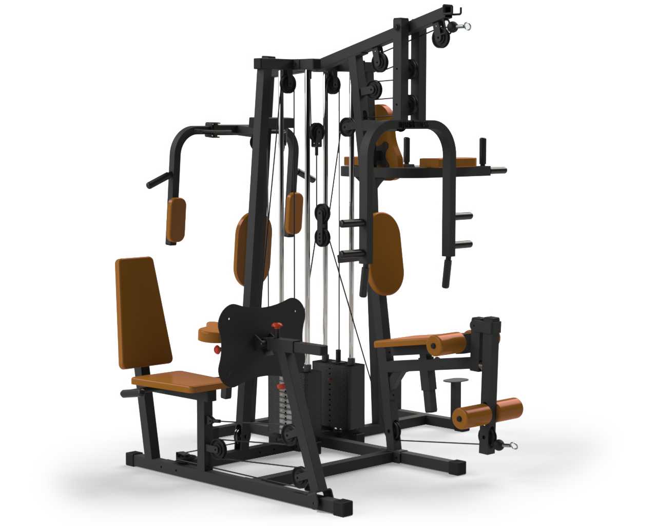 Manoplas, pés e empunhaduras emborrachadas;